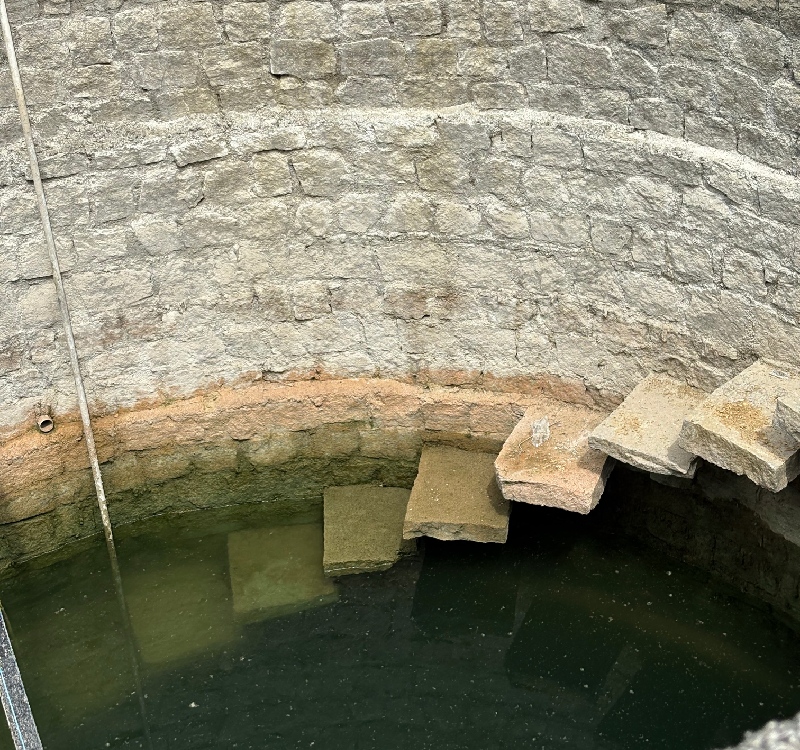 Sit by the old stone well and listen to the calming sound of flowing water.